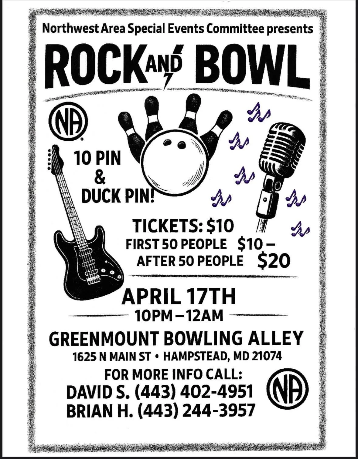 Back to All Events NW Rock & Bowl π€π» π³ Friday, April 17, 2026 10:00β―PM Saturday, April 18, 2026 12:00β―AM Google Calendar ICS